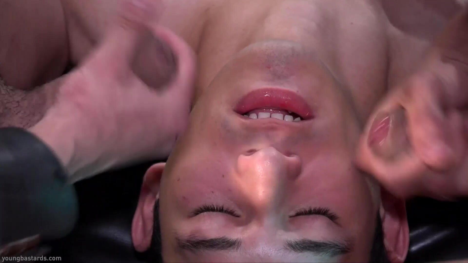 Fabrice and Aiden arrive to find twink boy Axel conveniently naked and bound over the bench, a perfect position for a couple of horny tops to take full advantage of. The boy might struggle at first, but with some painful slaps of his naked ass with the paddle and the taste of Aiden's hard cock on his tongue he soon knows he needs to play along. He doesn't have much choice, of course, Fabrice is soon ramming his raw cock between his tender ass cheeks and using his fuckhole for his own pleasure. Aiden should know not to trust kinky dom Fabrice, when he gets his shot at that hot hole his friend is soon coming up behind him to fuck his ass too, sandwiching the boy between them. Axel wasn't expecting to find himself being freed to take a turn, but with his cock inside Aiden and Fabrice ramming him too he's soon in heaven. It seems Aiden was expecting the double cum facial from the duo, he's thirsty for it.