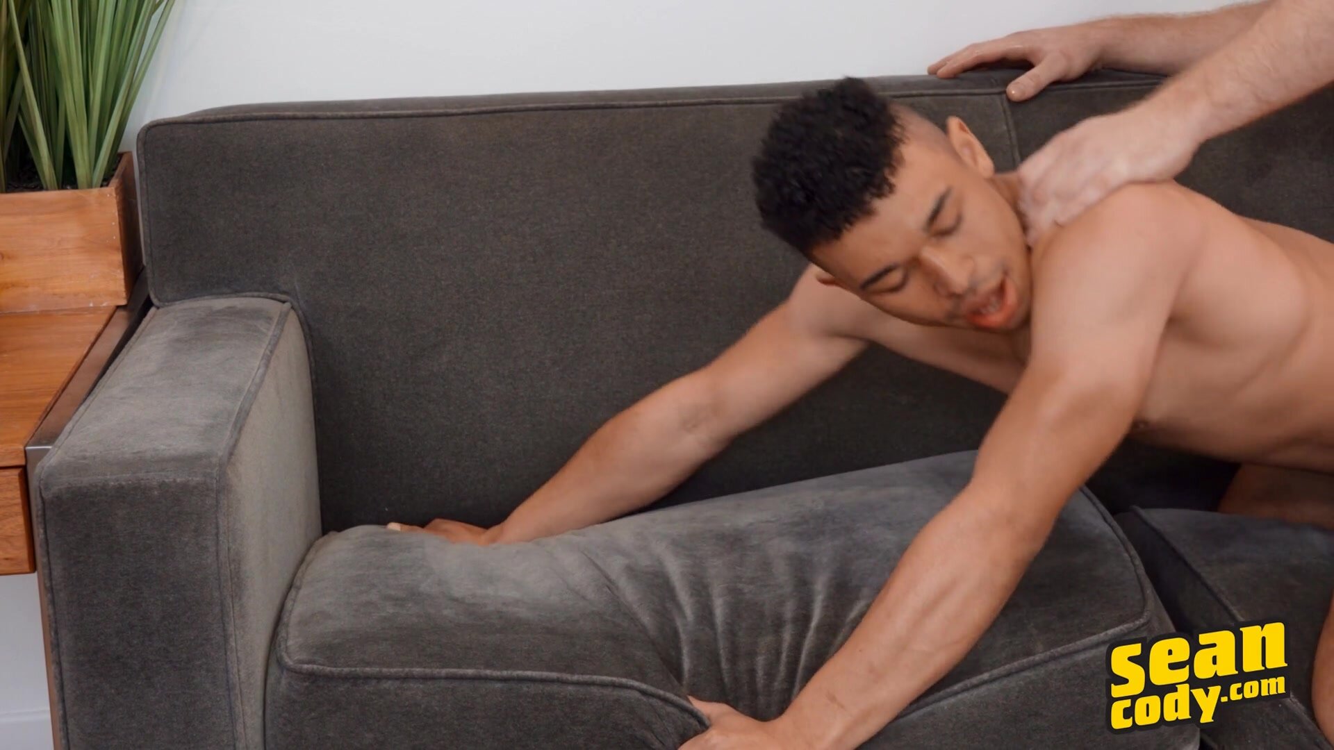 Jax is back in the studio today with short and cute twink Marcus, and he's excited to get his hands on him, especially his ass! The guys undress each other, and Marcus can't help exclaiming, "Wow, that's such a big dick!" as he takes Jax's pants off. "It's all yours!" Jax tells him, and Marcus sucks it to his heart's content before Jax lays him on the couch and fucks him in missionary. Marcus takes Jax's cock nice and deep in doggystyle, then rides him. The bottom cums as Jax penetrates him bent over the couch, and Jax shoots a huge load on his tight ass.