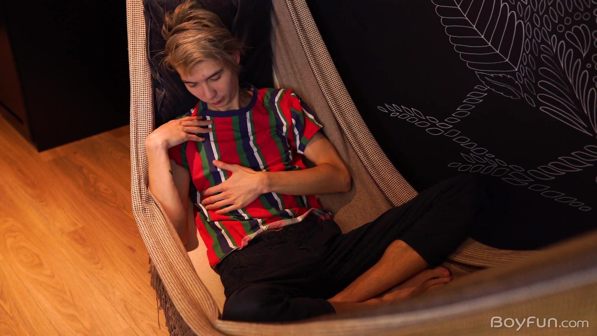 Big dicked boy Jay Hammel is enjoying a relaxing morning with his hot blond friend Daniel Star nearby when his need for BoyFun takes over. Like most young men his age he can barely keep his cock in his pants.
