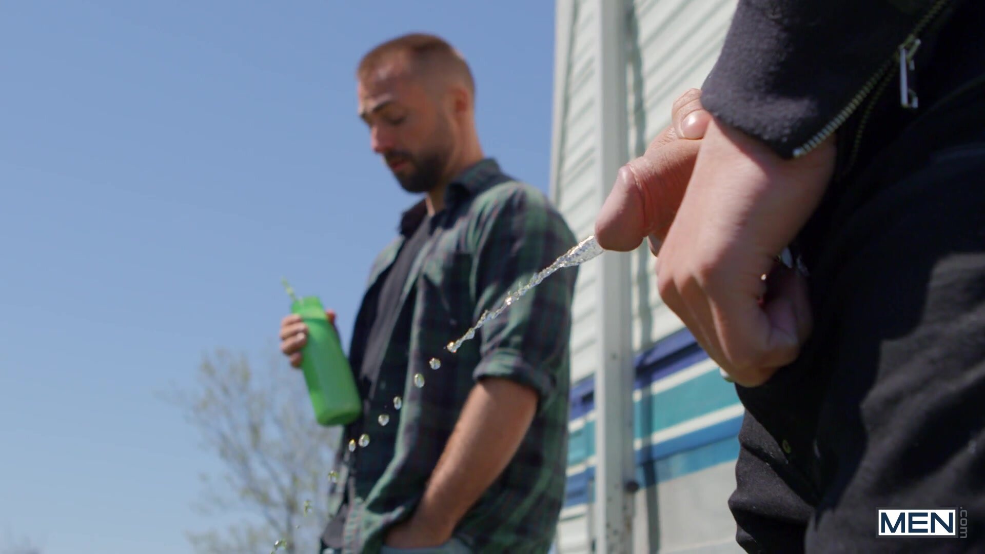 Jeremy London isn't excited for the trip with his mom and her new husband, because his new meathead stepbrother, Malik Delgaty, is such an asshole. Malik makes Jeremy hold his protein shake as he takes a leak, but when the camper hits a bump and Jeremy spills it on his stepbro's bulge, Malik makes him lick it up. As Jeremy sucks Malik's cock, he starts warming up to his stepbro, and when they stop for gas, the muscular top bends Jeremy over and fucks him doggystyle. Jeremy gets pounded on the banquette bench, then rides the top reverse before taking it bent over the table and he sits down to swallow Malik's protein shake. The top gives Jeremy some more of that dick until he cums. This trip might be fun after all!