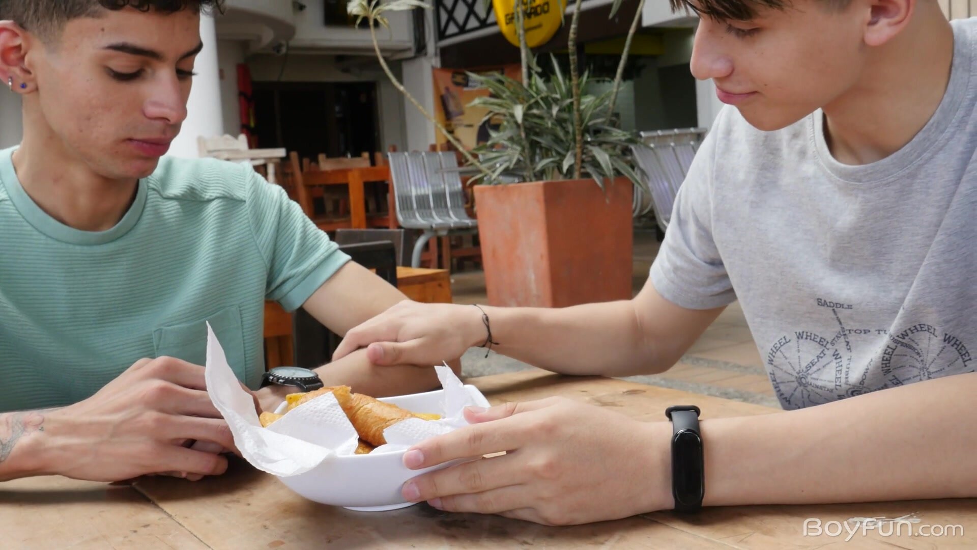 Cute boys Justin Host and Noah Smith share an afternoon snack in town but with both boys being snaccs themselves it's not long before they're seeking some privacy to enjoy a little BoyFun.