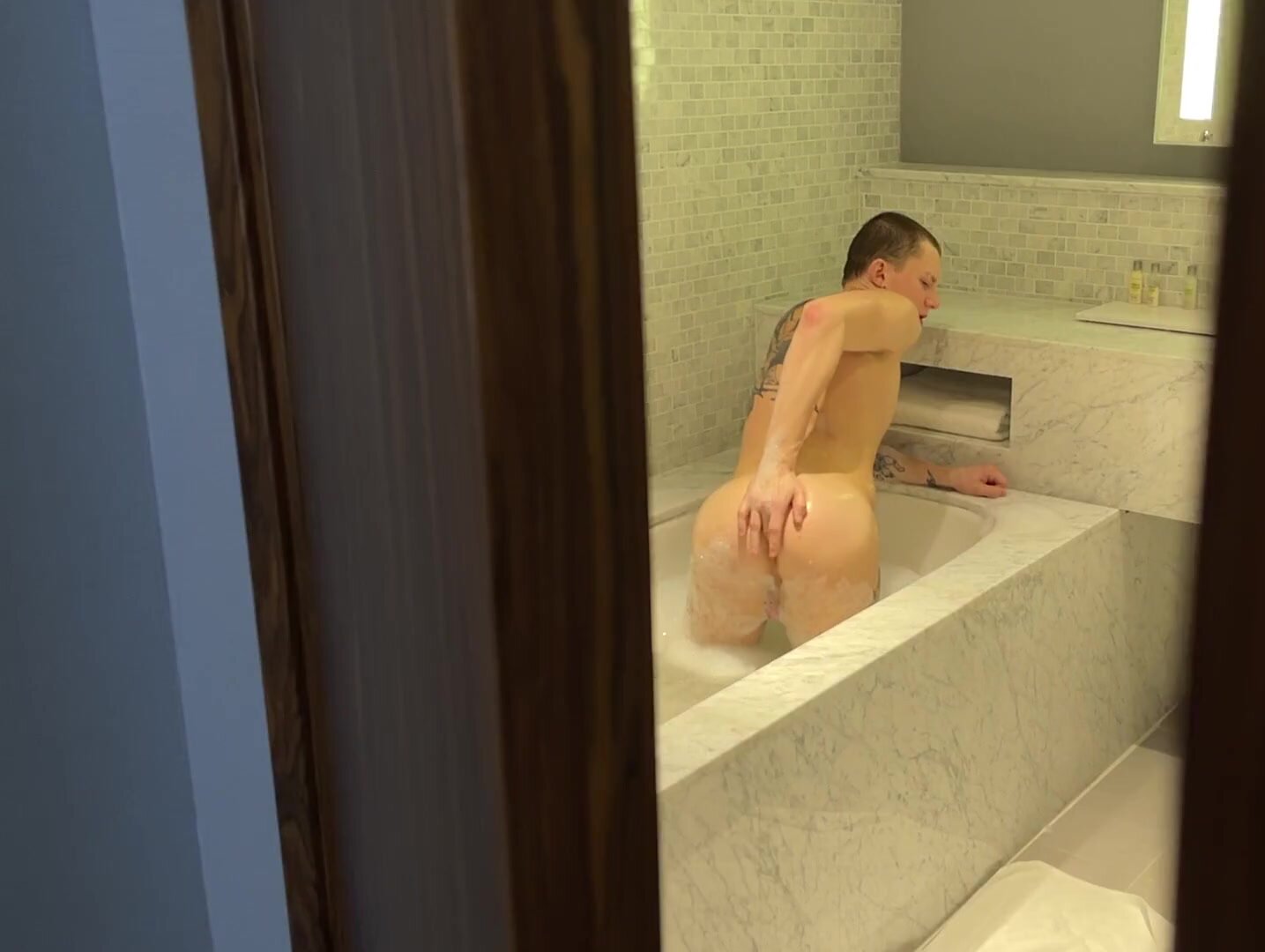 Stepfather fucked his cute Stepson in the bathroom and cum at his face.