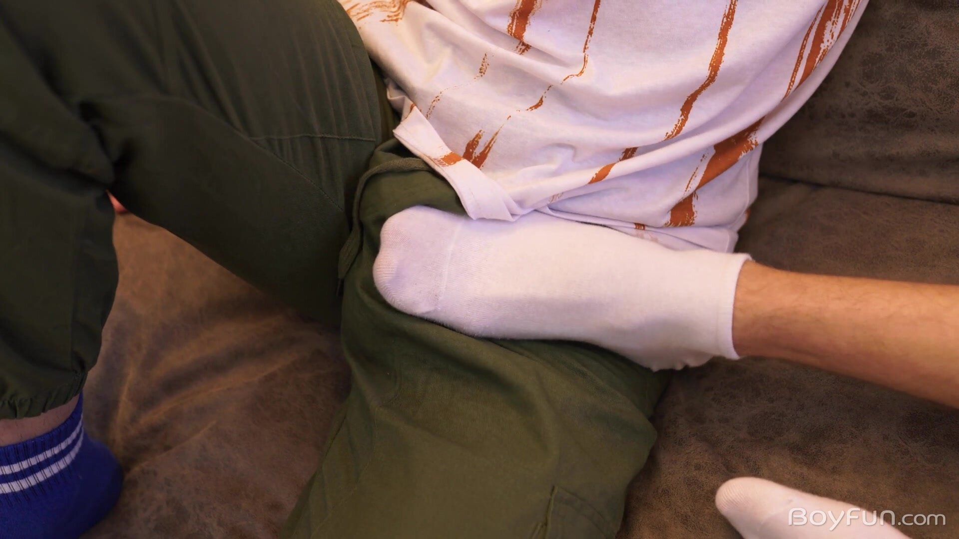 Description: (Max Gen, Tony Keit). Inked boy Max Gen loves to get a little kinky with his friends, but you know Tony Keit isn't complaining in this BoyFun session. The cute little guy is enjoying a book on the couch when his friend arrives and shows an immediate interest in his perfectly white socks, but he's even more interested in the boy's naked feet. With a little groping of swelling bulges Max is soon making the most of his young friend's bare soles, sucking on his toes, licking between them and worshiping those naked feet. It's truly a delight for any fan of foot play, but you can be sure they're not going to end with this. The pleasure swells immeasurably as their clothes come off. Max's hard cock is soon sandwiched between Tony's feet for some foot wanking, his long uncut cock rubbing between them while his tip leaks precum. He can't resist getting a taste of young Tony's delicious dong and spends a while sucking him, but the boy's hole is right there and just as eager for that oral attention. With some hot rimming and hole play Tony gets a taste of his buddy's big dick and savors the juices leaking from his helmet, but the fucking these boy share is the ultimate enjoyment. Max plunges his raw cock inside his friend and gives him a glorious pumping on his back, but he's soon demanding a dick in his pucker and impales his ass down on Tony's equally impressive shaft. It only takes one more swap in this flip fuck, with some spooning on the couch, to have these boys ready to bust out their loads. Tony pumps his cream from his dick in a flurry of orgasmic bliss and in moments Max is ready to wank out his own heavy cream all over his pal's sexy naked foot. It's the perfect finish for a foot-loving boy like him.