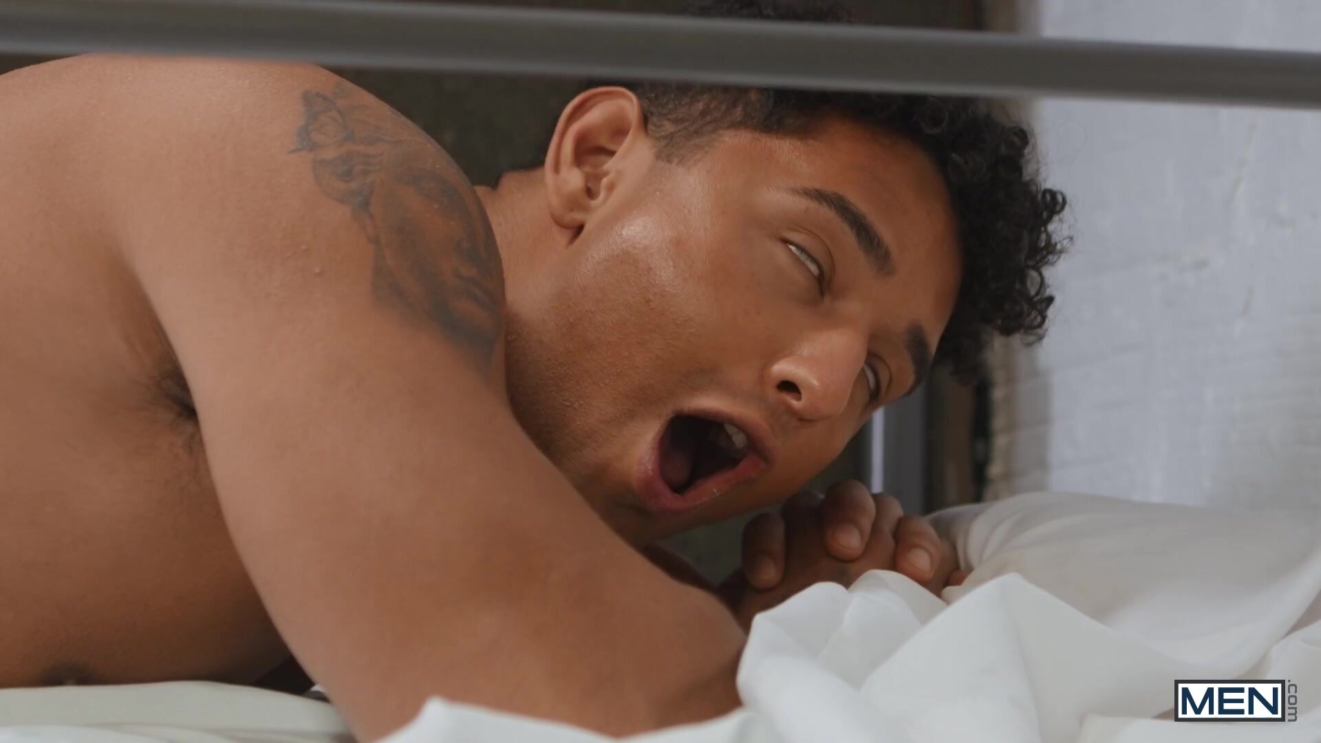 Horny soldier Maverick Sun thought he finally had a chance for some quality time with his dildo, but his roommates walk in on him, and Malik Delgaty threatens to report it! Kenzo Alvarez tells the hunk to chill out... and that night after lights out, he sticks his dick through a hole in the mattress for Maverick to suck. Malik cums in a sock as his roomies break regulations, and Kenzo fucks Maverick doggystyle way better than his dildo could. Kenzo pounds the bottom in missionary and spoon, reaching around to stroke him till he cums, and gives Maverick a facial. When the bottom finds Malik's cum sock, he realizes the top wasn't as uninterested as he seemed...