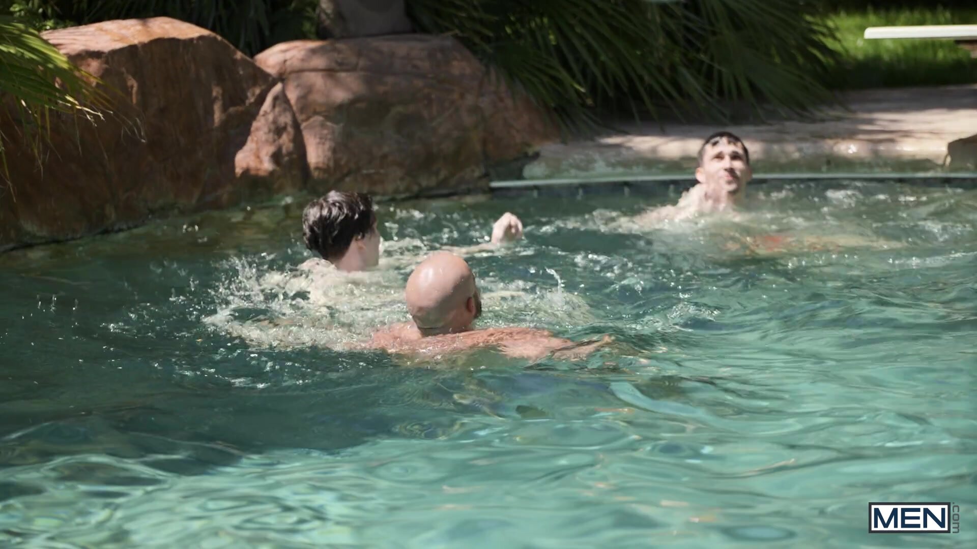 Twink couple Spikey Dee and Joey Mills are ready for a weekend of fun in the sun at the home of their favorite daddies! Spikey and Joey's making out in the pool soon turns to Joey sucking his BF's big cock, but they're interrupted by the other guys splashing. Spikey gives bearded hunk Greg Dixxon a hand with the wieners on the grill, and Greg sucks him, but leaves him with blue balls yet again, so the twink follows Greg into the kitchen and fucks his hole! Spikey sucks the bottom, then fucks him on the counter before bending him over it for more deep pounding. The bottom cums as he gets drilled in spoon position, and Spikey pulls out and finally shoots an enormous load.