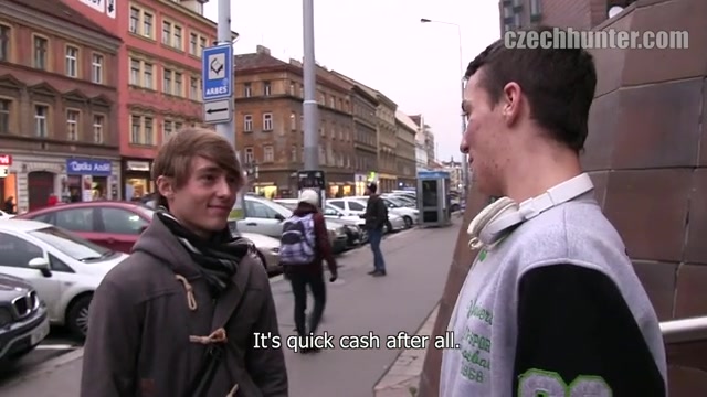 I don’t like banks at all. When I was young I was permanently broke. And even when I started to work in a normal job they still didn’t even consider issuing me a credit card nor lending me some money. This must have happened to two friends who I met the day before yesterday. They told me that they need money cause they want to move to Prague. But even when you can share the rent the money for the deposit is already a lot for a young guy nowadays. As I almost immediately fell in love with one of those guys I offered my „selfless help“. Both have been quite shy in that moment. Maybe they didn’t trust me. But when I payed them 2,000 for a kiss they realized their chance…