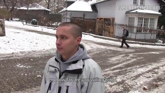 Finally it was snowing over the last couple of days here in Prague. So I went out to find somebody to play some crazy games with me. I met a guy with a strange accent. Don‘t get me wrong – his Czech was not bad – but I just realized that he was not from here. Actually he was from Russia. A small guy. But like many Russian he agreed to do something stupid in the snow to show the strength of his body. I offered him 3,000 crowns to undress and jump into the snow buck naked. As you might imagine he was almost freezing afterwards. So I invited him to come with me to a little hotel. There he could get a hot shower and the possibility to make even more money. *evil grin*