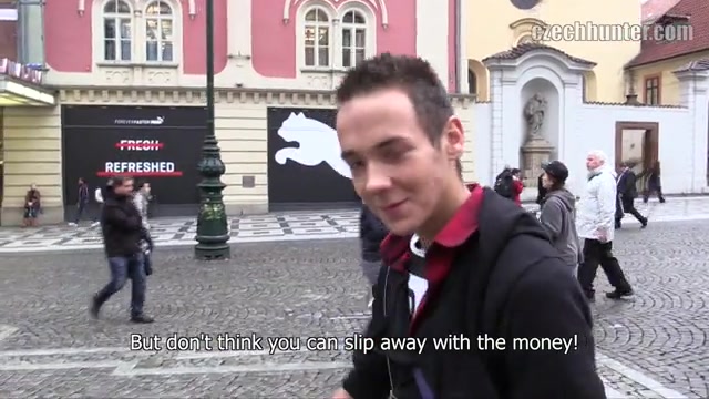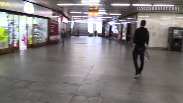 Today I started to hunt at a quite public square when it suddenly started to rain. But instead of going home I tried my luck in the nearby metro. It was surprisingly empty considering both weather and day-time. However I noticed a young guy who was giving away free samples of newspapers. So I decided to talk to him. He was not unfriendly, but somehow both shy and reserved. He was studying in Moravia and just came to Prague for this (shit) work. Sampling over 600 papers until the evening for about 1000 CZK only. Not exactly a dream-job. So I was sure he could really need some extra cash. But actually it was harder than expected to get him. I offered very good money for having a look at his dick and for getting a hand job… but he still hesitated.