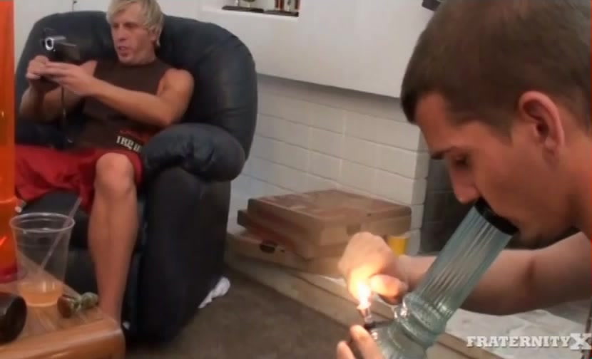 After taking some verbal abuse from the boys, Jake is ordered to his knees. With a cock in each hole this dick hungry slut is tag teamed by myself (I'm Angelo) and Anthony. This is pretty much the norm in our frat house. We talk some shit and then some frathouse bitch ends up getting plowed in both holes. There is no bigger frat bitch than Jake. Even though he won't admit it, he definitely loves making these vids.