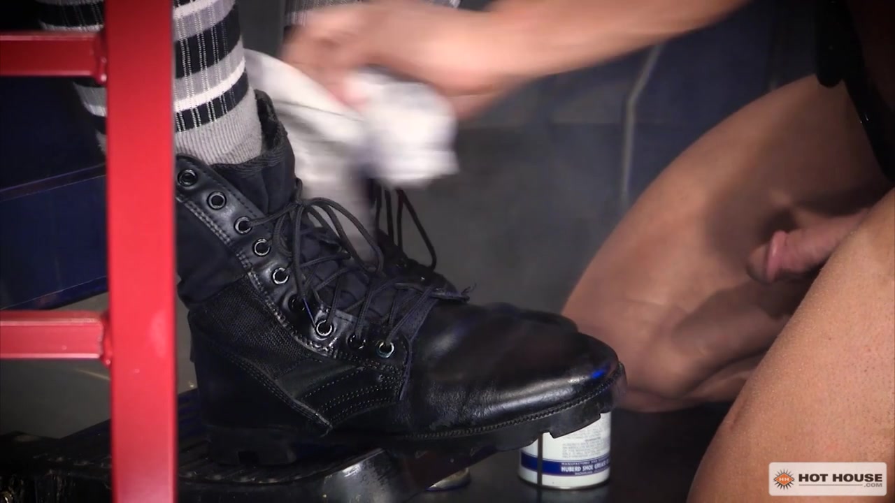 Skuff Rough Trade 2 Scene 2 - Muscly barber Johnny V is strapped in leather, and he's shaving tatted hunk, Adam Bryant's head as he strokes his cock in the barber chair. Adam's cock and balls bulge through his constricting cock ring during the haircut. Johnny checks his work, ditches his jock and hits his knees to polish Adam's boots and dick. Johnny lowers his wet mouth onto Adam's hard cock as he polishes his boots. Once Adam's cock and nutsack are coated in Johnny's spit, Adam bends Johnny over a padded Lazy-Susan and spreads his ass open wide to slink his tongue into. Licking from the tip of Johnny's cock, all the way up to his winking hole, Adam buries his face in between Johnny's cheeks. With Johnny's hole lubed up in spit, Adam glides his meat rod into Johnny's pink center with one swift thrust. Pounding from behind, Adam holds Johnny in place by his leather harness. Johnny switches to his back and gives Adam direct access to drill his prostate. Johnny's screams intensify until he loses control and explodes thick ropes of pearly white cum onto his washboard abs. Seeing Johnny climax sends Adam over the edge and he bursts his hot load all over the inside of Johnny's thigh