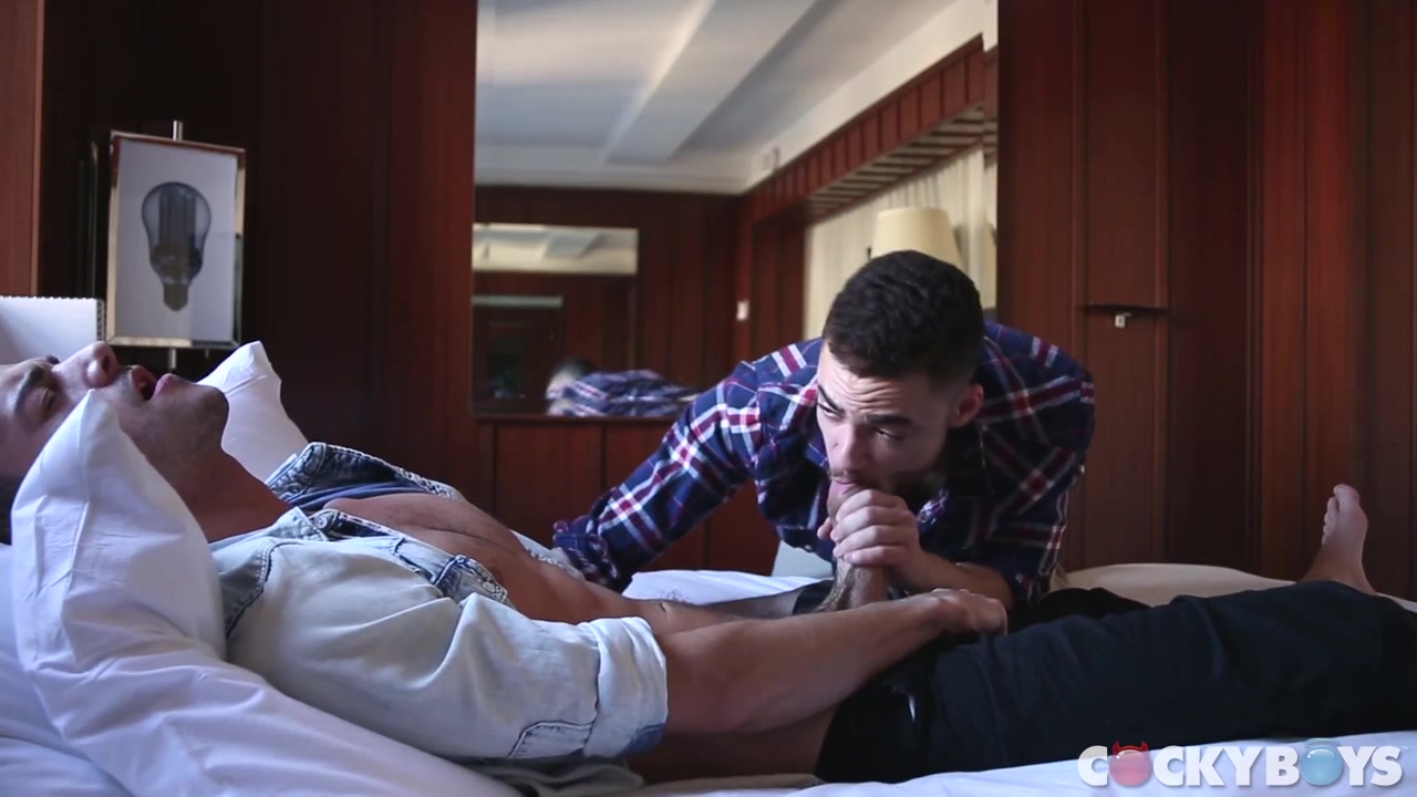 After a long day of touring the city, Beaux and Cory want nothing more than to kick back and relax, but when Beaux offers to step out and grab some refreshments Cory is quick to find his own method of relaxation. Once the door closes, Cory pulls his hard cock out and begins stroking himself. Seeing an opportunity and catching an eyeful of Cory's taut body, Beaux secretly watches Cory as he rubs his hard cock. Brazen and lust fueled, Beaux decides to "catch" Cory in the act.