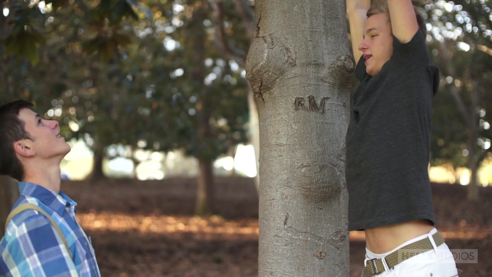 There's some heavy flirting going on at the park today between way big Wyatt Walker and cute, boy band-worthy Noah White! Enjoying their gorgeous youth climbing trees horse playing in the park, the sexual tension gets the best of them. White can't take it and wraps his arms around Wyatt for a hot make out session! Wyatt feels Noah's nasty bits getting bigger and can no longer control himself! Dropping to his knees right there in the public park, he deep throats the dude balls deep! The too cute twink tweaks his nipples while Wyatt works his wang. Naturally they need to take the action indoors before being arrested! Wyatt's red hot boy briefs can hardly contain his massive meat. The colossal cock flops out and nasty boy Noah is there waiting with a hungry wet mouth. The big boy flips Noah around, spits in his tight hole and crams his giant right inside, raw as raw can be! Noah can't get enough, reaching back to pull Wyatt and his whopper deeper inside. As an added bonus, we hear the big balls slapping White's perfect ass as he moans and begs for more. Wyatt flips Noah like a burger once more so we can see him tug his rock hard twink torpedo while Wyatt wraps his hands around the kids neck in a super hot love choke! The brings Noah to the brink and he bangs out an epically nasty nut causing Walker to do the same. Using two hands, Wyatt wanks out a wicked wad, creaming all over the boy's pretty pucker! Perfect!