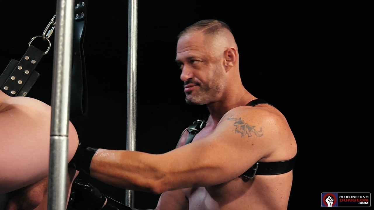 Blond and smooth, Cody Winter sprawls across a leather bench. His sir, D Arclyte, rubs his hands along Cody's lean body. Their shiny black harnesses squeak against the leather bench as Cody rips off his codpiece to reveal his throbbing, uncut cock. D expertly administers a blowjob to his boy, then flips him over to eat Cody's eager hole. Eager to please his daddy, Cody moves to a sling where he opens up his ass for D's fat fist. As D slides his knuckles past Cody's muscle ring, the sub's moans get more and more intense. Every movement of D's hand against Cody's guts elicits gasps and yelps of mind-blowing pleasure. Faster and faster, D pumps his fist into Cody's hole, passing his wrist. Passing his leg over D's arm, Cody faces forward and fucks himself on his sir's big fist. 'You gonna cum for daddy?' asks D. 'Oh yes please,' replies Cody. With Cody's hole gaping, D wraps his hands around Cody's neck and constricts his airflow, and the feeling of being totally at the mercy of his sir impels Cody to shoot a massive, spurting load into the air. When Cody's orgasmic moans subside, D asks him, 'You ready to take care of daddy?' 'Yes sir!' - Cody Winter, D'Arclyte