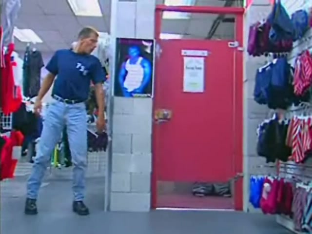 As mentioned earlier the second scene features Gino Pizano and a useless suction gizmo. Gino is a sexy lad with a moustache and goatee, a beautiful pattern of body hair, and pierced ears and tongue. Leaf enters the dressing booth where Gino has gone to try and get that useless tool to work. Leaf has a tool that does work and Gino is soon the anal recipient of same. This was a disappointing scene in that it had two great looking guys and should have been hotter.