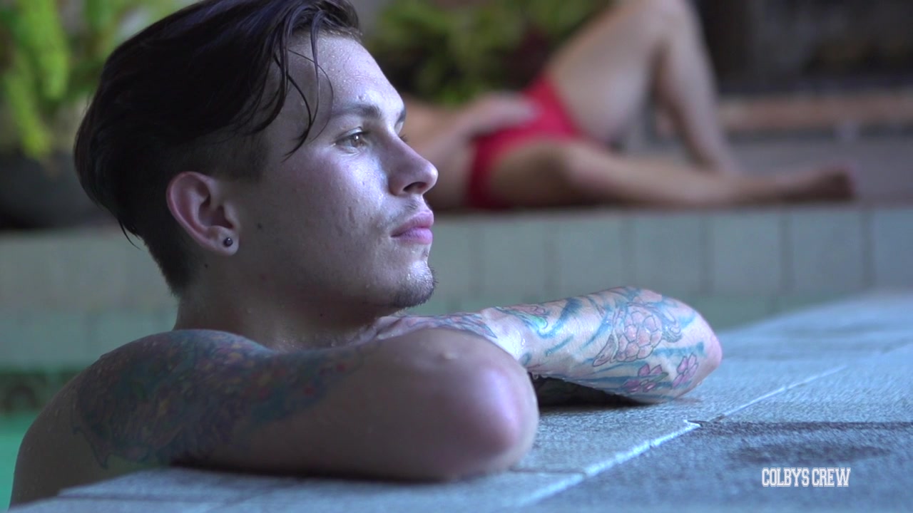 Like a Phoenix rising from the ashes, Seth Knight rises from the waters of a Greek Jacuzzi tub, angling to service a relaxing yet horny Colby Jansen. Colby, for his part, is just laying back and enjoying the mood, eyeing the young hairless stud. Seth makes his move and starts giving Colby one intense blow job, deftly alternating between hand and mouth action and keeping his mature partner in a slow motion trance. As he grabs his cocksucker’s long hair, Colby manhandles the kid’s head, shoving it up and down on his stiff shaft. Seth then take a break, gets up and offers Colby his hard rod, filling it to the max. You’d think that the size of Seth’s cock would intimidate Colby, but no, he doesn’t shy away from a bit of deep throating and the occasional gag. Colby is showing some definite talent at cock sucking and Seth is writhing with pleasure. Smooth-bodied Seth then decides to retake control of Colby’s tool by bending himself forward and plunging on Colby’s cock once more. But this time, he’s shoved his ass in his mentor’s face and Colby obviously obliges with a good tongue lashing and spit fest. Once he’s gotten the boy’s hole all nice and wet, Colby gets up and shoves his hard cock into Seth’s starving hole, mounting him from behind. Seth’s slender and toned body is compact in comparison to the massive frame of his ass fucking partner. Colby then spins his buddy into a spooning position and he continues his assault of the kid with his ass-impaling dick. Finally, Colby wastes no time laying Seth on his back and fucking his hungry and now very stretched hole. The boy is getting really hot and bothered as he watches Colby dominating his hole and watching his reaction. This pushes Seth over the edge, spewing his load all over his stomach. Colby’s intense fucking action has him also on the verge as he quickly moves to blow a nice wad. The cum-drenched Seth mixes the baby batter on his stomach as his hunky partner Colby bends over and kisses him passionately.