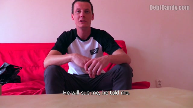 It was indeed a surprise for me to see that guy’s friend coming in. I was still naked but even though I just had a great cum-shot the idea of fucking his room-mate was an instant turn-on. I told the other guy to leave and continued with him. Obviously he knew by now about the kind of deals I am offering. And he had some time to think about it… and now, as he himself is asking for it I should have an easy game. We started to talk about his debts. He told me that he was crashing a friend’s car. And the car was – of course – not ensured. All he was asking for was 25000 CZK to repair the car. I offered him 30000 CZ to keep him motivated. I could see from his eyes that somehow he was even happy to get rid of the debt but on the other hand not sure what he was about to do…