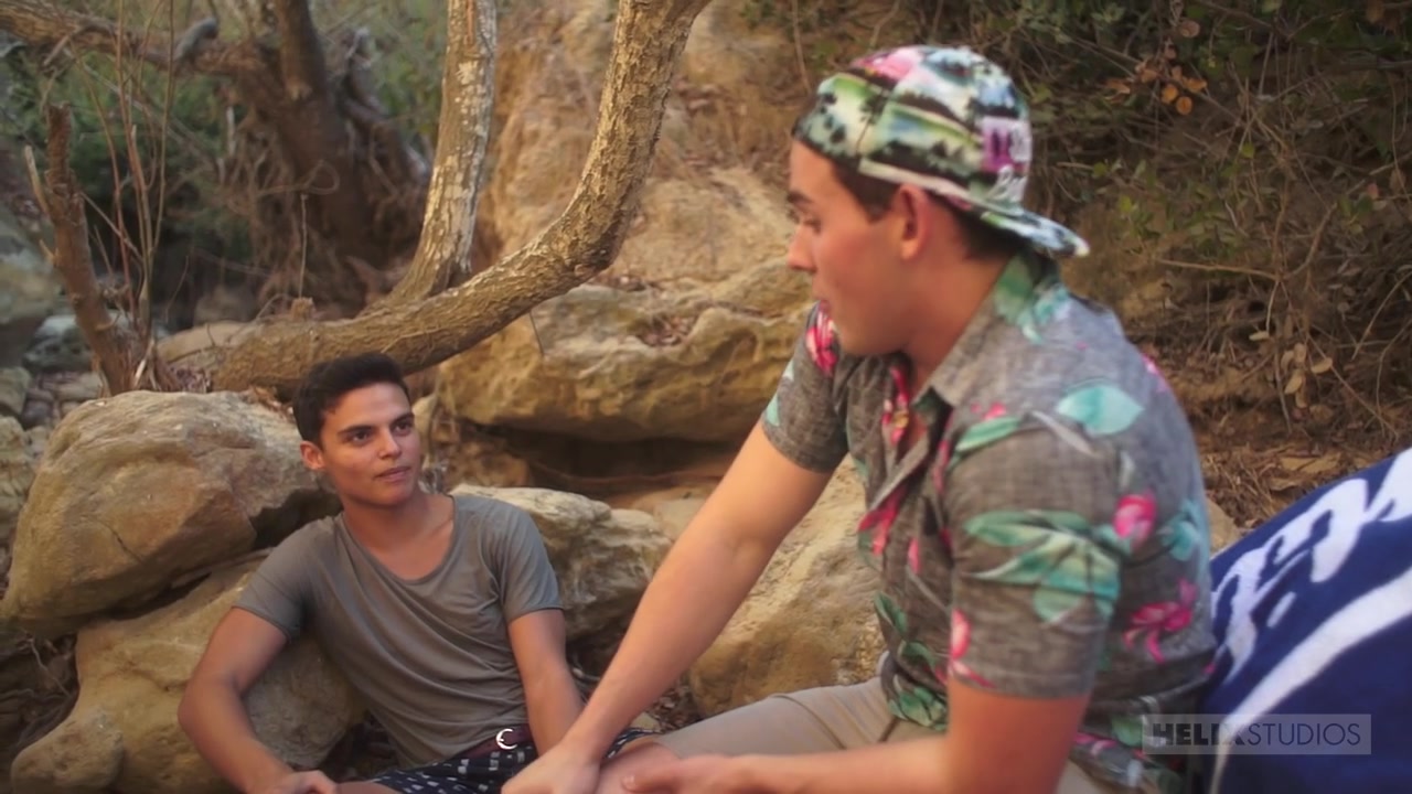 As the sun sets on a beautiful San Diego beach, sexual tension rises between Gabriel Martin and Josh Brady. Tucked in a secluded cove the guys swap sex stories about kinks, domination and spanking. Then, Josh busts out with a naughty outdoor sex story that heats up gorgeous Gabriel to the pervy point where he wants to give it a go! After the cock filled convo created all that sexed up suspense, the guys hit it hard from the first kiss. They suck face and grab one another with animalistic hunger. Josh pulls at Gabriel's clothes, anxious to get at the boy's beautiful butt. He cups the bronze booty with both hands, spreading it apart rough and hard and definitely NOT handling it with care (in the best way possible.) The great outdoor's has brought out the primitive side for Gabriel as well. He unabashedly sucks Josh's giant jock with wild abandon, slurping and gagging on the engorged goliath. Brady picks his boy up, bends him over a rock and spreads the beauty's smooth ass as he jams his tongue deep inside like a dawg in heat. In a super hot "Brokeback" moment, Brady spits on his hand then slams the entire length of his schlong deep inside Martin's magnificent ass. It takes Gabe a bit to adjust to Josh's big beef stick but once the boy is on his back his ass opens up, anxious for each thrust of the bareback beatdown Brady's banging out. Jacking his joystick like a boy on the last level of his favorite video game, Gabriel moans for more fuck. Josh drives his dick in hard, causing Martin to make a delicious, creamy white mess all over his smooth, golden brown body. Josh joins in on the fun, flooding the boy's hole with the immense contents of his cock. He shoves his cum slicked dick back inside Gabriel's glazed doughnut, creating a cream filled desert that would rival anything from Krispy Kreme - Josh Brady, Gabriel Martin