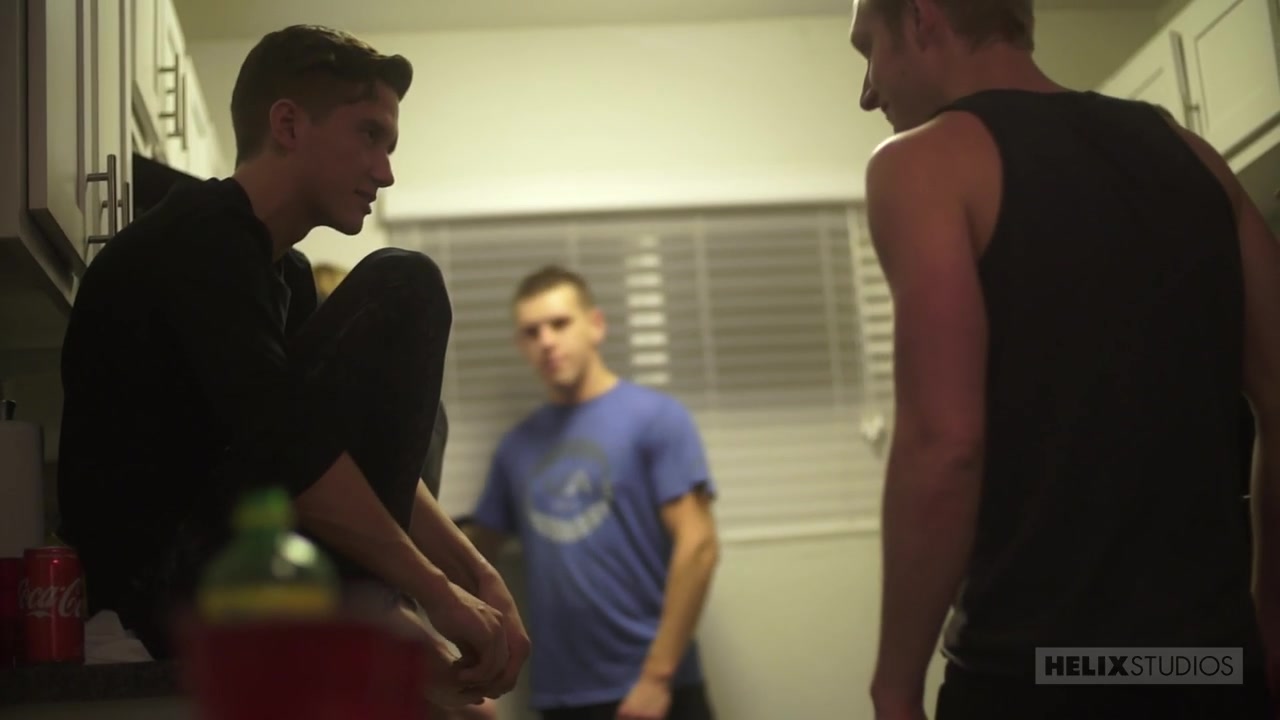 Description: The boy's have had quite the party at the Helix mansion tonight and now, it's that time of the night when only their best bed buddies are left and all are feeling a little frisky! The guys are a bit tipsy which leads to a sexy six pack competition, nipple tweaking AND jailbait Joey Mills gets pantsed right there in the kitchen! Yup, it's THAT kind of a night! Shane Cook and Tyler Hill have been flirting the entire evening and finally drift off to a secluded bedroom where Shane scoops the kid up in his muscular arms, slams him against the wall and sticks his tongue down his throat. Tyler is in hunk heaven and enjoys every moment being manhandled while climbing this mountain of a man. Hill is up for an even bigger challenge when he drops to his knees and comes face to face with Cook's monster cock. He downs as much of the beefcake's big beer can thick dick as he can while working the rest with a hot handy combo. Cook gets his boy on the bed and gifts the guy's groin with a gorgeous, balls deep dick suck before blasting the kid's beautiful back door open with his hungry tongue. Shane knows exactly what he's doing and has Hill's hiney horned up, arched and aching for a banging. He presses his ample, uncut appendage into Tyler's tight hole slowly but surely, making sure not to split the twink in two. Once Hill accommodates ALL Shane has to offer, the boy's booty opens up and Cook REALLY lays into the lad, pumping his porn star sized piece like a well oiled piston. The room fills with the sounds of giant cock slamming into perfectly plump, smooth ass mixed with heart pounding moans of pleasure. The sexy stud definitely does some delicious damage to Tyler's tush and the finale of fuck fireworks at the end is an orgasmic overflow worthy of these two superstars!