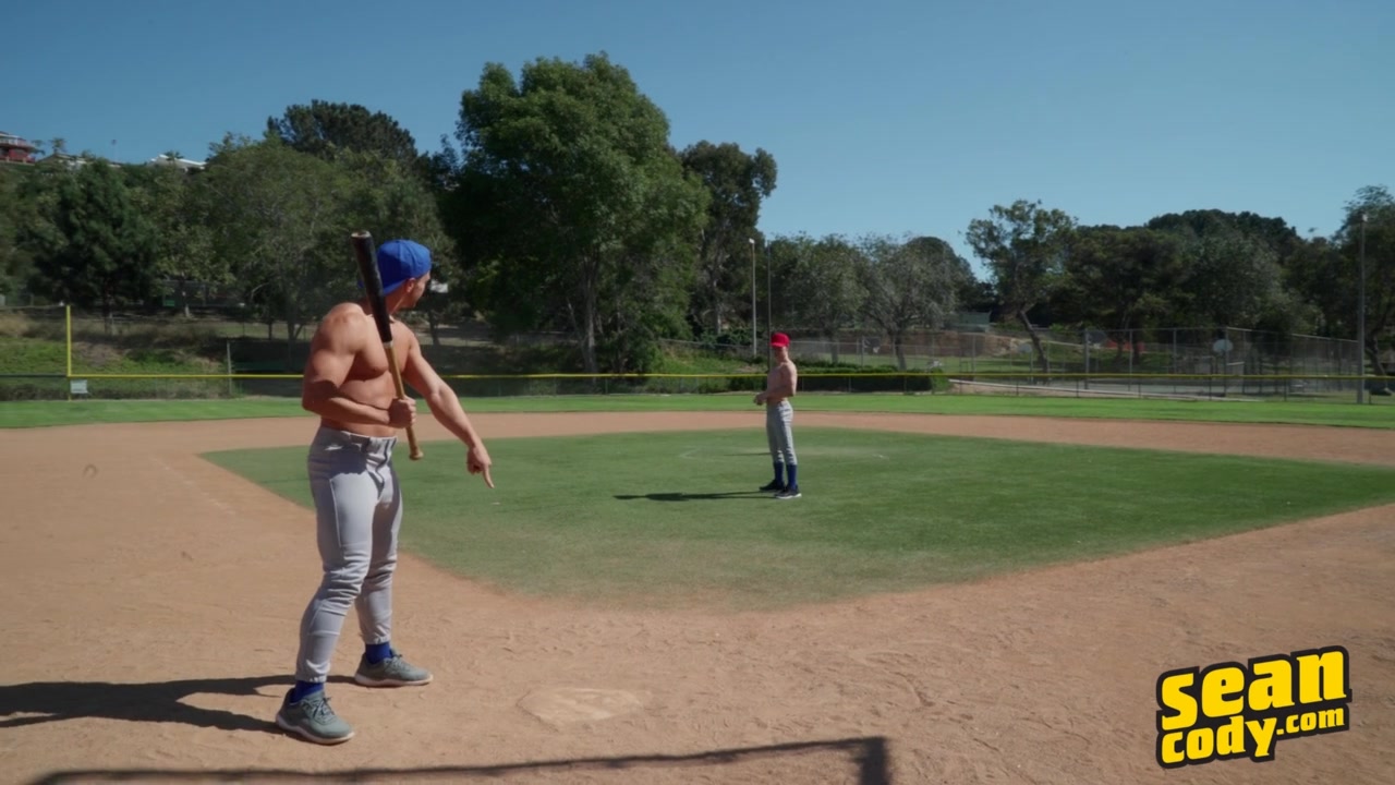 Cuties Deacon and Riley take off their shirts and lace up their cleats for a trip to the baseball field. Deacon chokes up on the bat, teasing, "Want me to hit it hard or am I gonna be hitting one soft?" Riley shoots back "I'll make it easy for you. Promise," before tossing a beautiful pitch. When these guys get back home, though, it's Deacon who's pitching as Riley sucks his big cock and hops on top for a ride. These muscular studs try out a super athletic planking piledriver before Deacon cums all over Riley's cock, then licks it off!