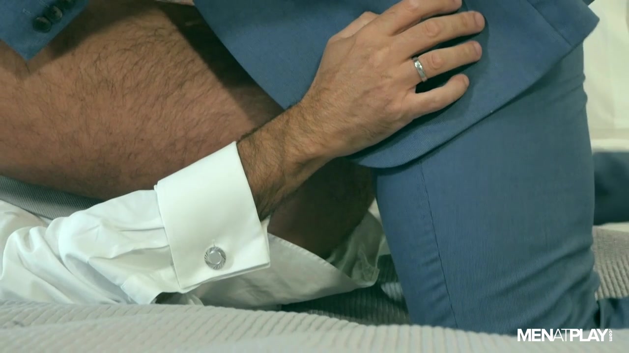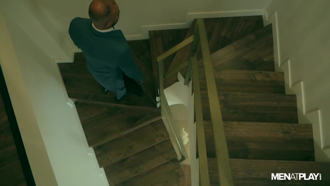 Bruno Max is preparing for an important work meeting. Caffeinated, dressed to kill, and documents in-hand, he heads out for the day. Xavi Garcia, in his MenatPlay debut, is finishing up a hot shower before he too makes his way to the office. Bruno notices he has forgotten one particular document; returning to retrieve it, he meets a showered and suited Xavi in the stairwell. Seriously impressed with how well-dressed Bruno is today, Xavi can’t resist one last kiss before they both depart. One kiss inevitably turns into far more, and the two studs begin using their mouths on one another right there on the stairs. Xavi informs Bruno that he will have to be a little late for that important meeting, and they move things to the bedroom.