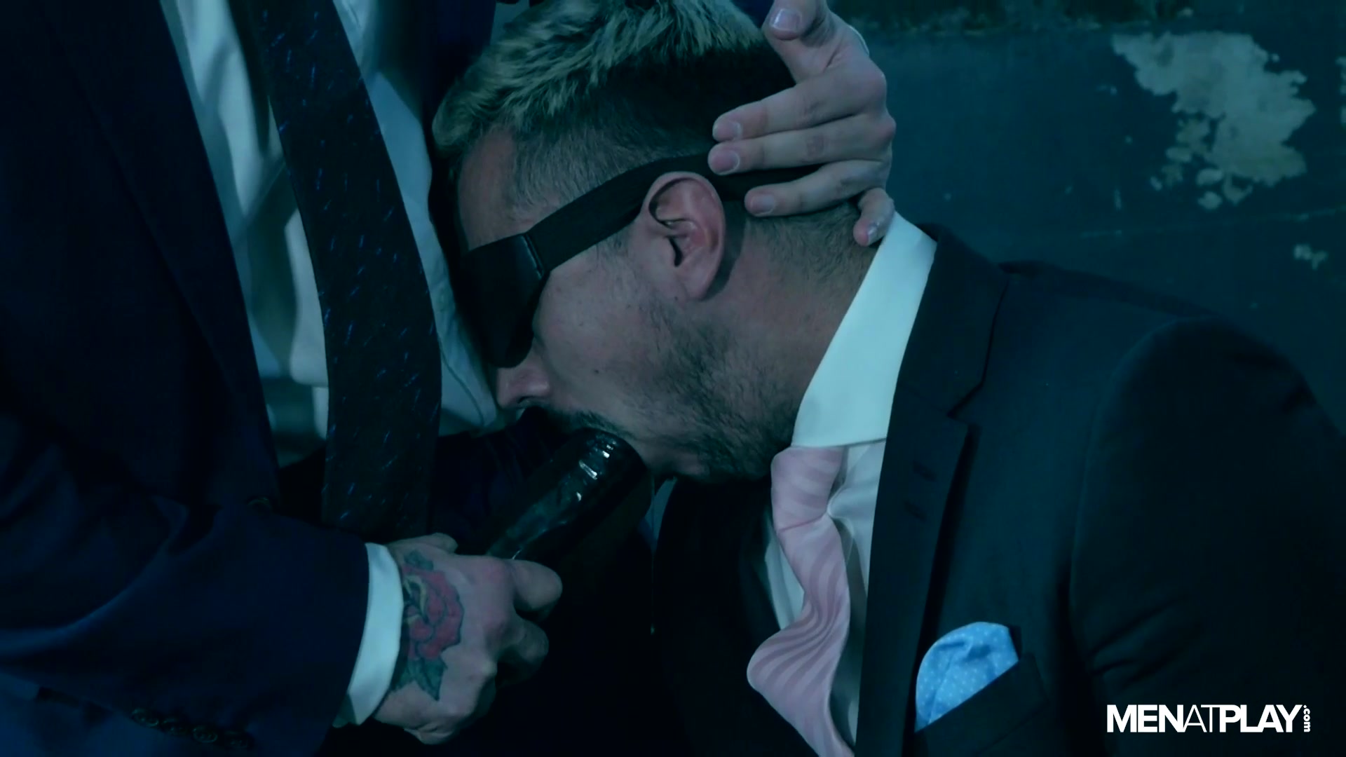 He makes Dani suck a black dildo, then impels him to suck his cock. Shortly thereafter, he unties Dani but keeps his hands tied, moves him against the wall and works his ass with the anal sex toys followed with a rough fuck. While Dani is getting fucked, he manages to remove the blindfold, finding out that the stranger is Manuel Scalco (also making his Men at Play debut).