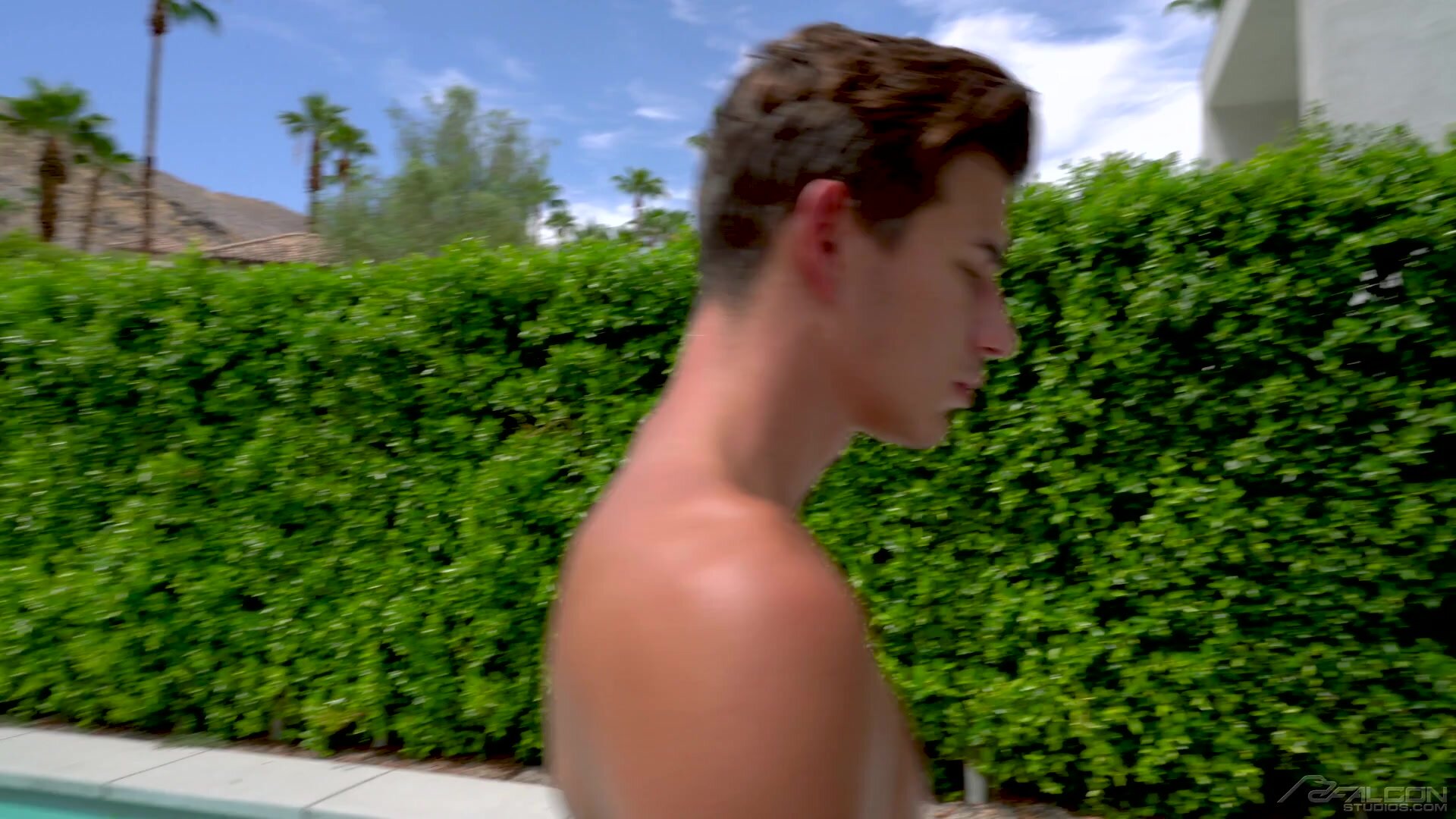 When Cade Maddox comes down the stairs and notices his sexy pool boy, Kuper, cleaning up, he steps outside and gets in a lounge chair. Turned on by Küper, Cade starts rubbing his cock that's already bulging thru his speedo. When Küper notices the throbbing meat, Cade signals him inside to the couch. Without hesitation, Küper heads straight for Cade's thick cock with his lips. Cade feeds the willing pool boy his meat, making Küper gag on his thick pole. To show his appreciation, Cade puts the Küper's cock in his mouth while continuing to stroke his dick. Küper gets on all fours on the couch to give Cade total access to his hairless hole. Cade spreads Küper's cheeks and gets to work with his fingers and tongue, opening up the pool boy's ass. When Cade has Küper's hole nice and prepped for what's to come, he picks the stud up and carries him to the bedroom. Once on the bed, Cade takes a few more licks on Küper's hole before sliding his bare cock into the willing stud. On his back with his legs in the air, Küper grabs ahold of his cock and strokes it while Cade works the hole over with his cock. Switching positions, Küper rolls over and takes Cade's meat doggy-style. Cade continues the bareback pounding of the horny stud until Küper gets on top and rides Cade's cock. After Küper's ride, Cade throws Küper back on his backside and thrusts his full weight on top of Küper. While Cade is stretching out his hole, Küper lays back and works his load out of throbbing cock onto his abs. Seeing Küper bust his nut makes Cade let loose and shoot a thick load on Küper's ass. After swirling the load around with his cock, Cade slides back into Küper one last time.